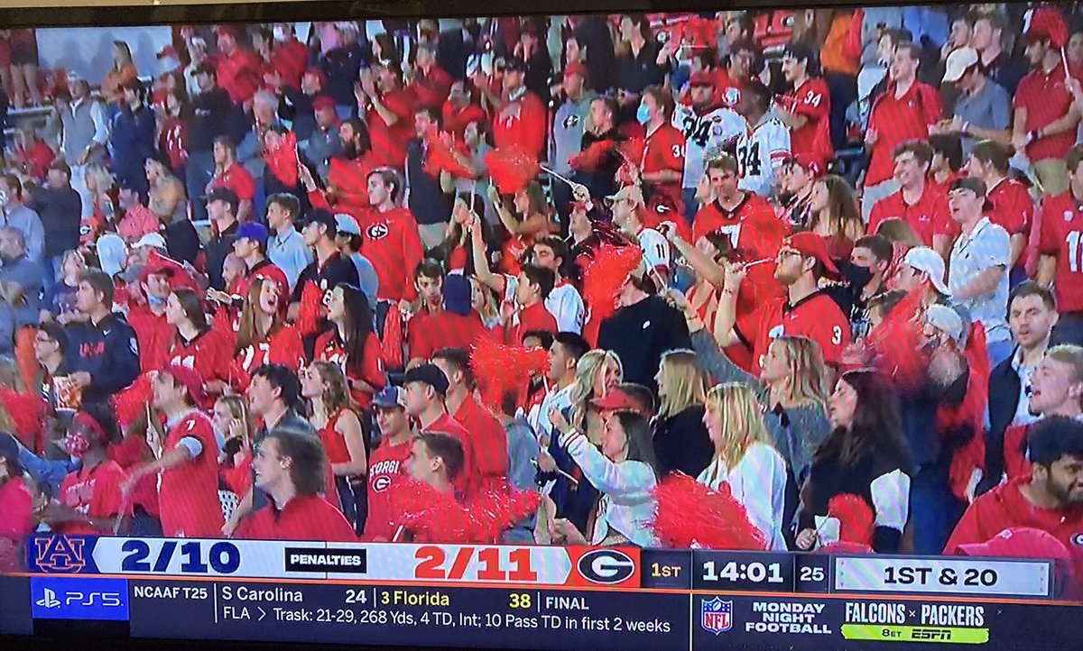 U(sic)GA stadium is pretty packed and I don’t see a single mask on a fan.