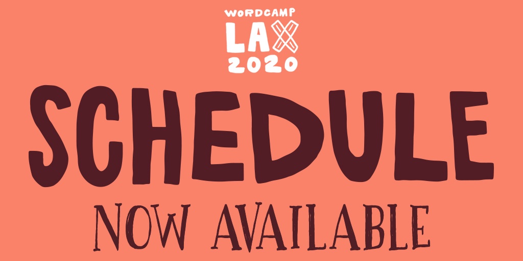 "text": "The schedule for WordCamp LAX is now live - la.wordcamp.org/2020/schedule/",
