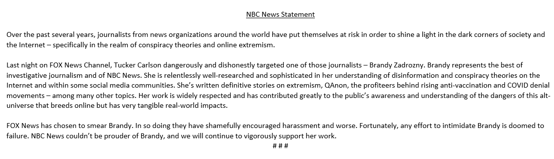 Glad to see NBC standing up for one of their reporters. Every news organization should do this when a journalist is being baselessly smeared: