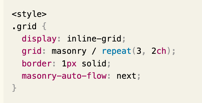 This is fantastic! I’d reach for a Masonry layout a lot more often if it were baked into CSS. Don’t want to load in any unnecessary JS plugins just for layout.