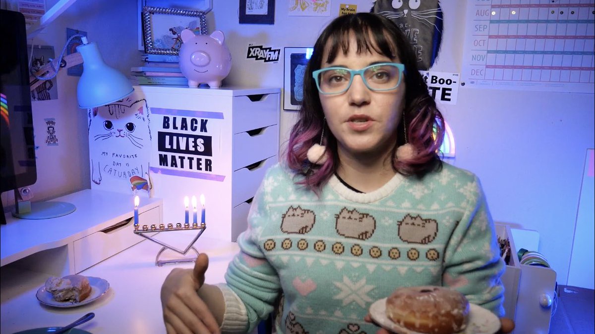 "text": "It's a vegan Hanukkah livestream! Kugel, Sufganiyot, Menorah I hope doesn't set my house on fire... and oh yea, we're gonna talk about the stimulus? Live in 6 minutes: youtube.com/watch?v=fFpQyG\u2026",
