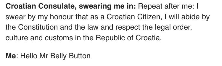 "text": "I am now prepared for everything as a potential Croatian citizen. My friend taught me to say the most important phrase"