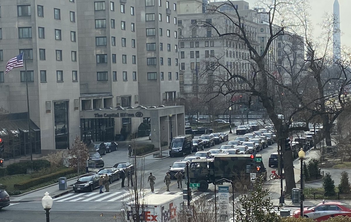 Outside my office window this morning: National Guard at every intersection, FBI Wanted posters with pictures of Trump insurrectionists, and all of downtown Washington DC...