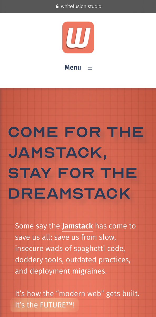 "html": "It's alive, it's alive!!! \ud83d\ude31\n\n<a href=\"https://www.whitefusion.studio\">whitefusion.studio</a>"