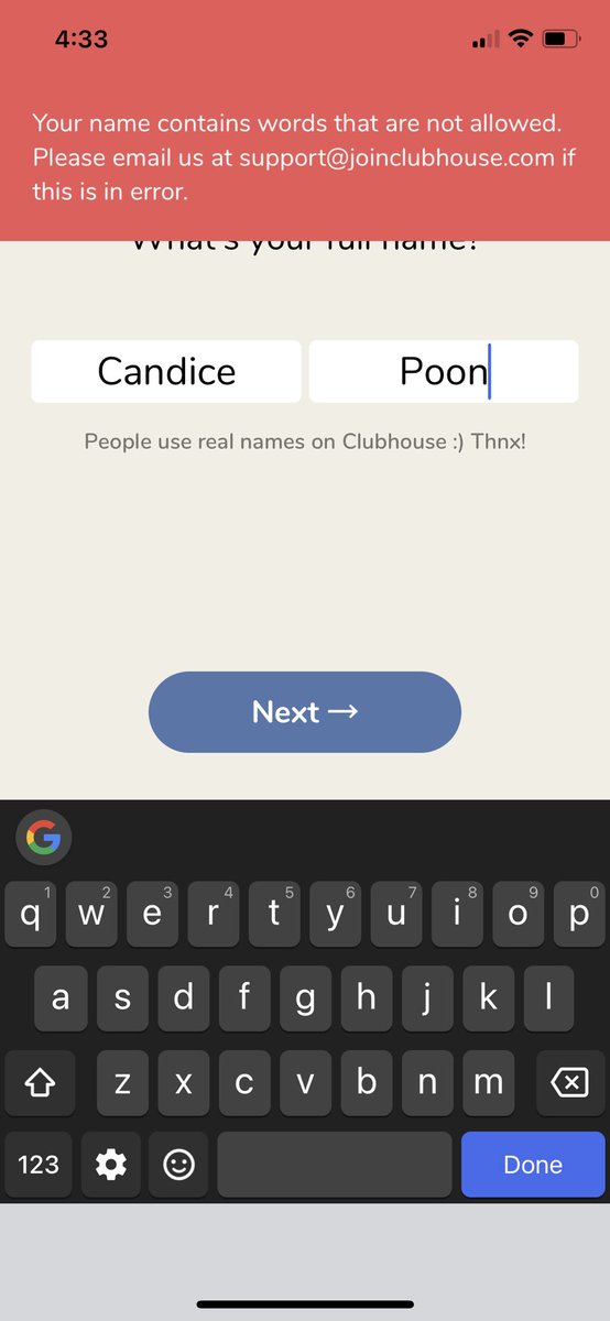 .@joinClubhouse is so inclusive, I can't join cause of my last name 🙃