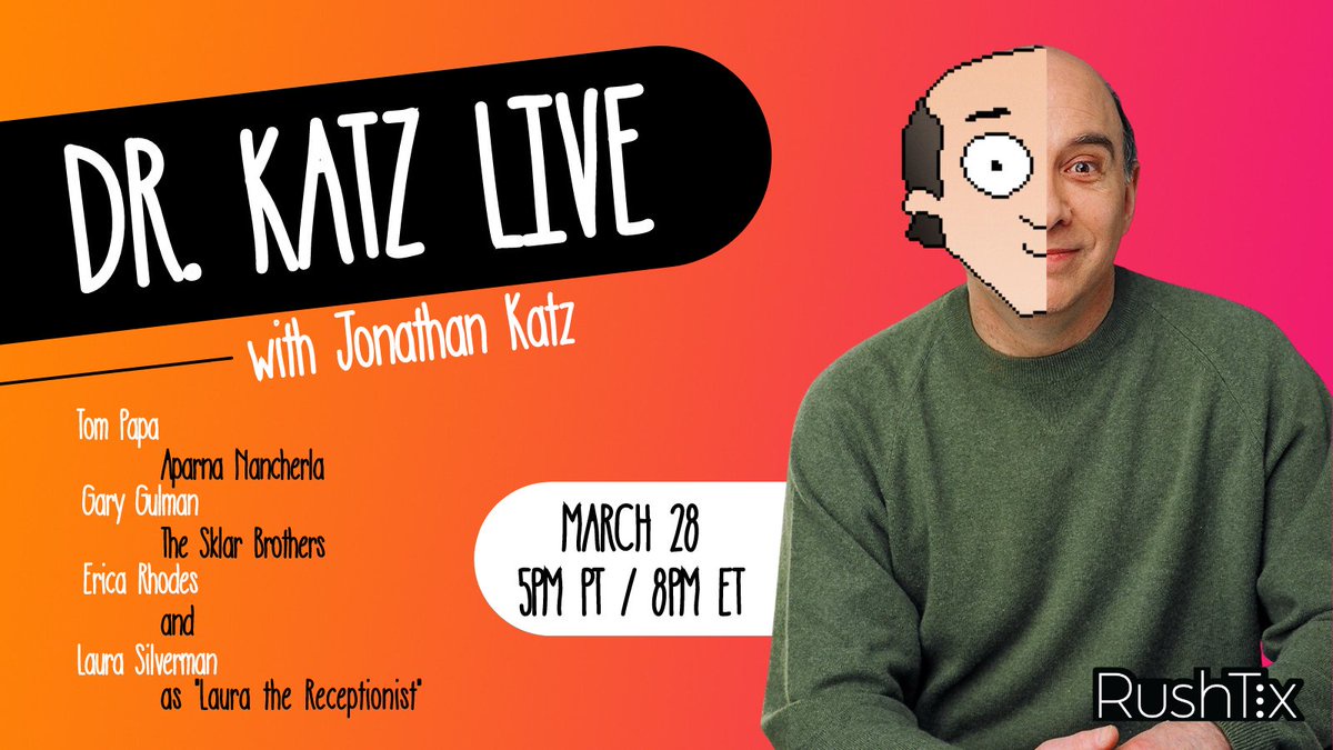 "html": "THIS SUNDAY! Don't miss DR. KATZ LIVE with the original cast: <a href=\"https://twitter.com/JonathanPKatz\">@jonathanpkatz</a> as Dr. Katz, @laurajanesilverman as \"Laura the Receptionist\" with patients <a href=\"https://twitter.com/tompapa\">@tompapa</a> <a href=\"https://twitter.com/aparnapkin\">@aparnapkin</a> <a href=\"https://twitter.com/GaryGulman\">@garygulman</a> <a href=\"https://twitter.com/SklarBrothers\">@sklarbrothers</a> and <a href=\"https://twitter.com/ericarhodes\">@ericarhodes</a>. 3/28 @ 5:00pm PT \ud83d\udc49 Get tix: <a href=\"https://buff.ly/3d4cp1t\">buff.ly/3d4cp1t</a>"