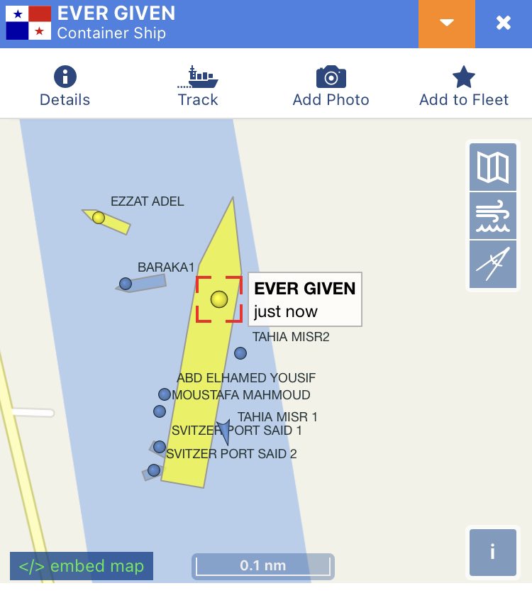 FREE. Video of Ever Given vessel fully floating freely in #Suez moments ago.