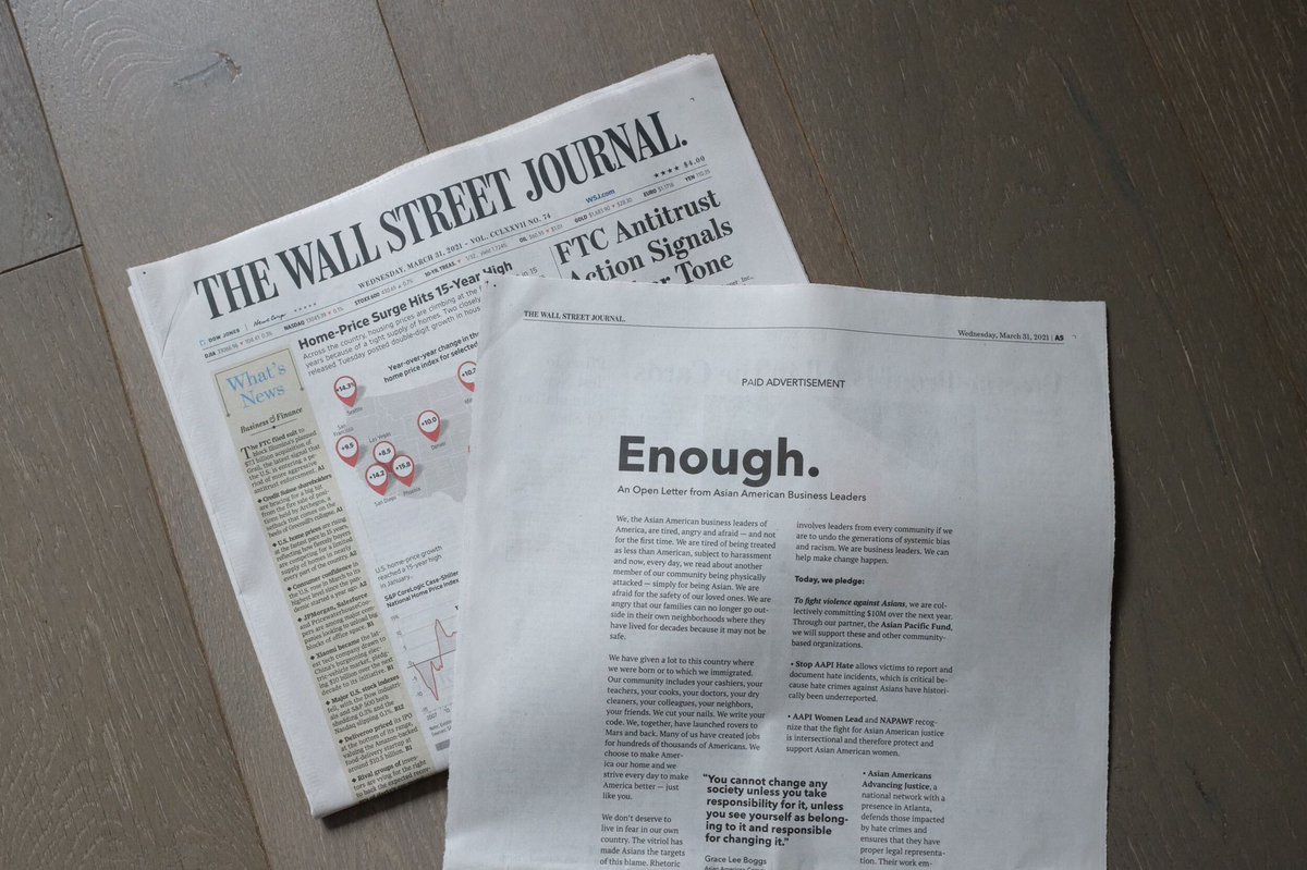 In today’s @WSJ you will find a letter from us, Asian American Business Leaders, and our commitment to #StopAsianHate.