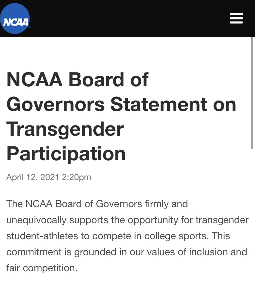 BREAKING: @ncaa will pull events from states with anti-trans bills: “Our clear expectation as the Association’s top governing body is that all student-athletes will b...