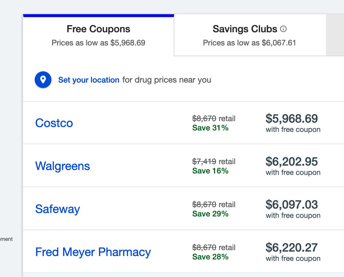 Yes, I have heard of goodRX. Prices for 4 weekly shots are “as low as $5,698”- just 150% of my monthly salary for a full time job in tech!