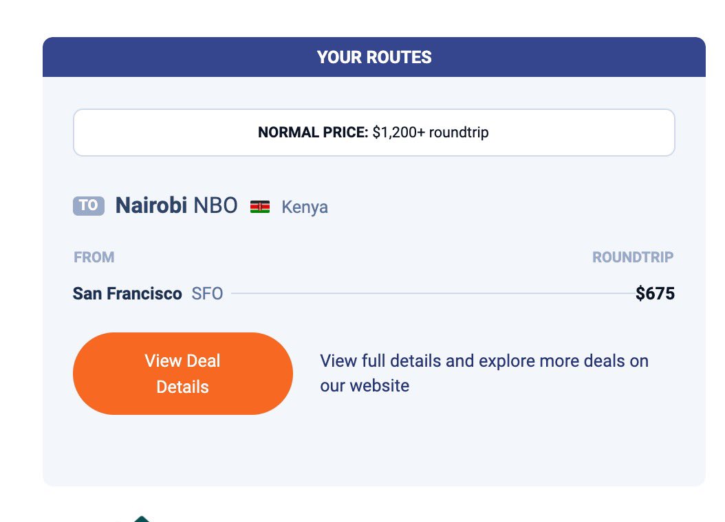 "text": "$650 RT from San Francisco to Kenya next feb stop me from booking."