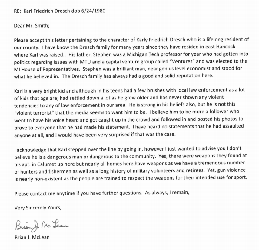 The supporter who called Karl Dresch a “very bright kid” (and left out Dresch's criminal conduct in his 30s) is **checks notes** the sheriff of Houghton County, Michi...