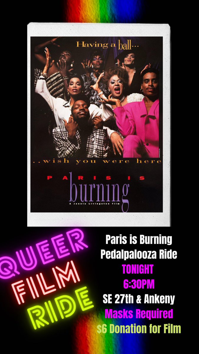 Have you longed to do something for #pride and #Pedalpaloozapdx but don’t want to ride far or stay out late? I’m hosting a short ride *tonight* to @cstpdx to Paris is Burning, a film about ballroom culture in NYC during the AIDS crisis. Details: shift2bikes.org/calendar/event…