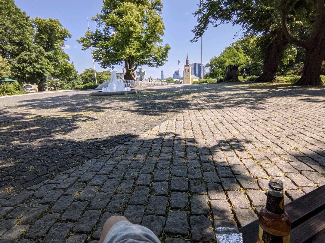 Got food, found a nice bench in the shade, have the gentle breeze and murmur of a sweet little fountain, what more could I ask for? 😊 (@ Harjumägi in Tallinn) swarmapp.com/c/fJZYe0BWrFi