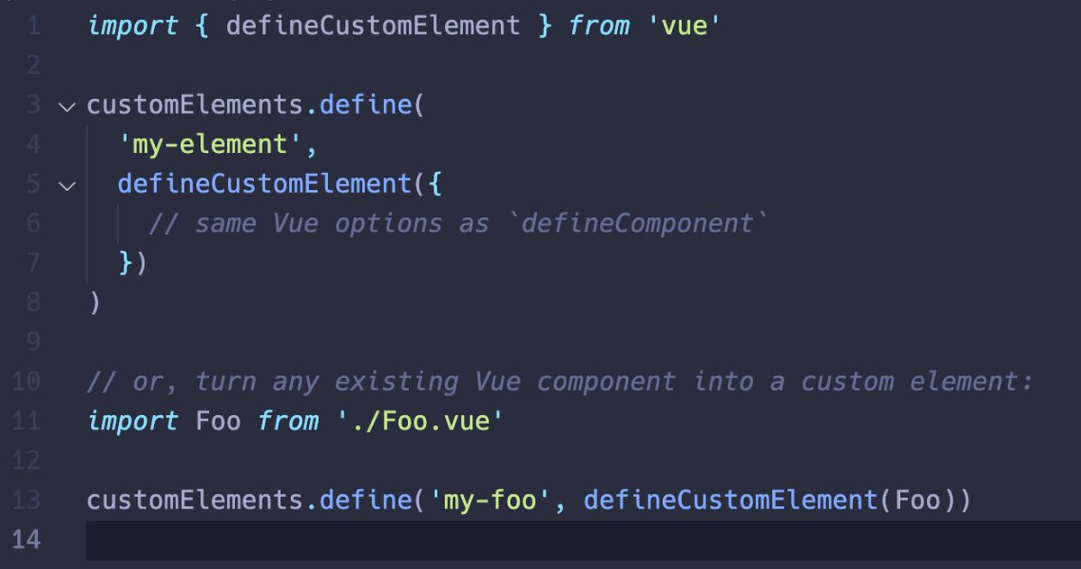 "text": "Coming soon: Core API for turning any Vue 3 component into a custom element.\n\nWorks with most Vue APIs including props, emits, and even provide/inject between nested Vue custom elements. Slots will render as native slot elements."