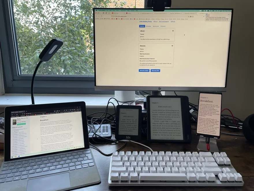 "text": "A completely in-browser webapp (look ma', no backend! \ud83d\udc4b) for generating standard ePUB ebooks & static web deployments from a Markdown/ASCIIdoctor/Textile book manuscript!\ud83e\udd2f\n\nGutenberg would have *loved* this! Check out @soapdog's Little Webby Press! \ud83d\udc47\ud83d\uddde\ncommunity.webmonetization.org/little-webby-p\u2026",
