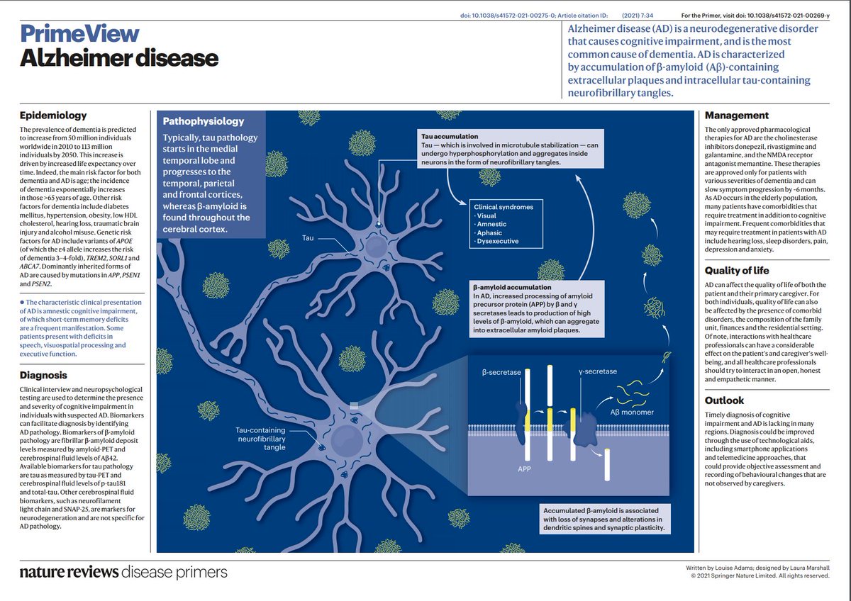 The prevalence of #dementia is predicted to increase from 50 million individuals worldwide in 2010 to 113 million individuals by 2050 go.nature.com/3uNeXbO #AlzheimerDise...