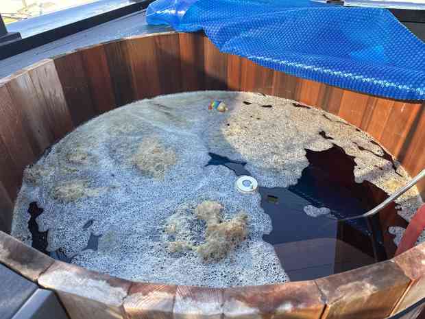 oops! let the chlorine drop too low and also there was a leak and this happened! gotta go drain the tub and start fresh, at least it's only like 300 gallons