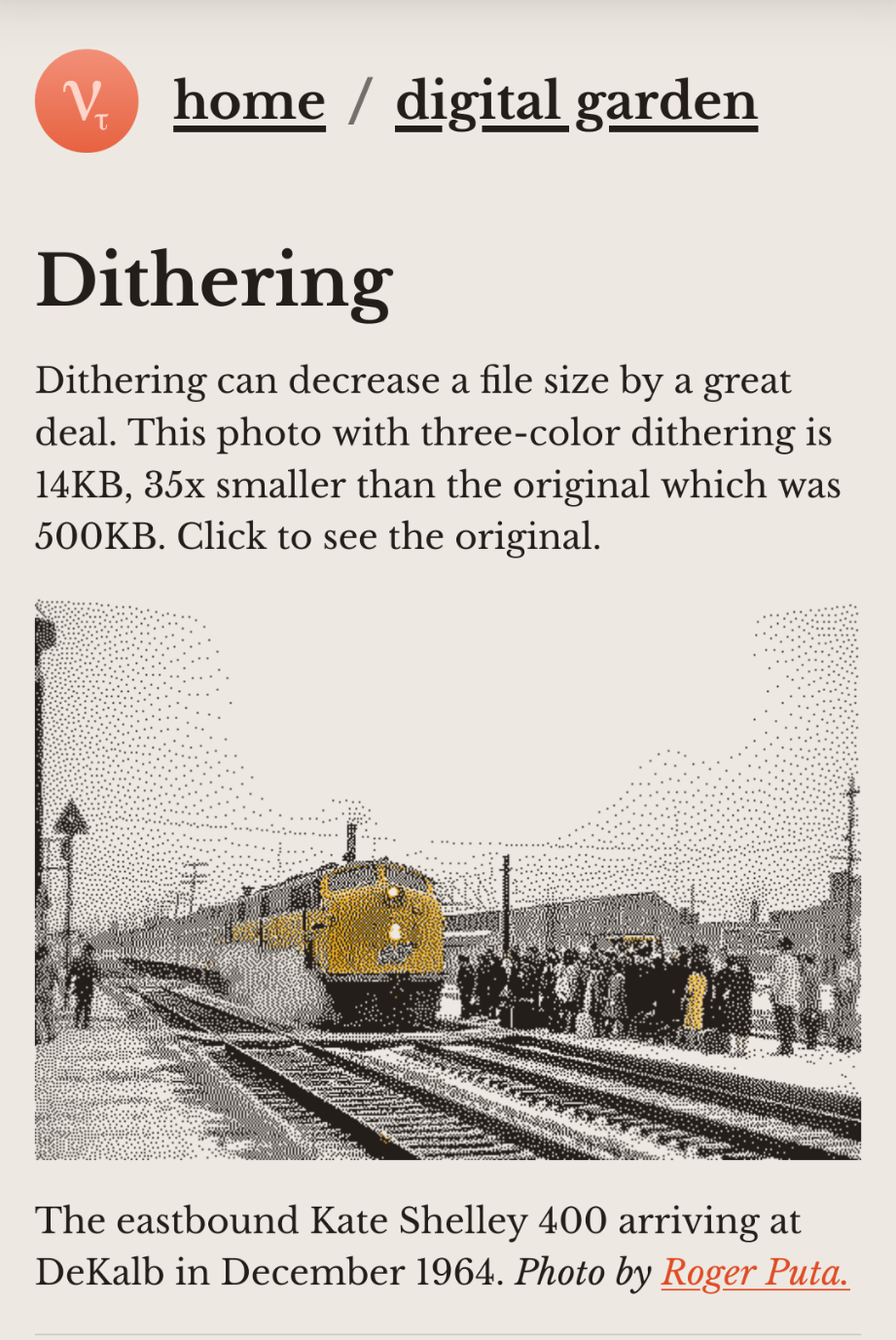 Colors are pulled from my site theme, so dithered images look like they're part of the page rather than on top of it.