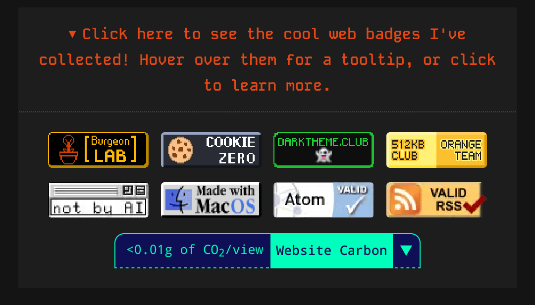 Quite happy with how it looks. 🤓 Plus, all the badges are now under a <detail> tag to keep it clean.
