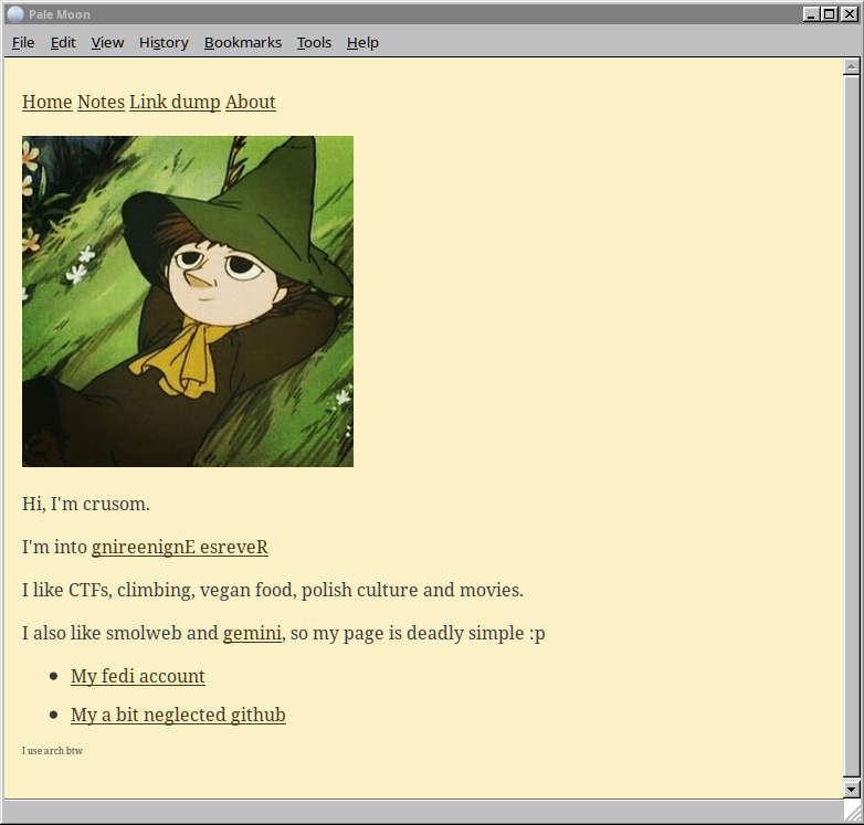 I really like personal homepages and have quite a list of them bookmarked. I'll post one every week unless I fall behind this schedule. 😉 So here's Cool Personal Homepages #CPHP Vol. 50: "crusom.dev" https://crusom.dev/