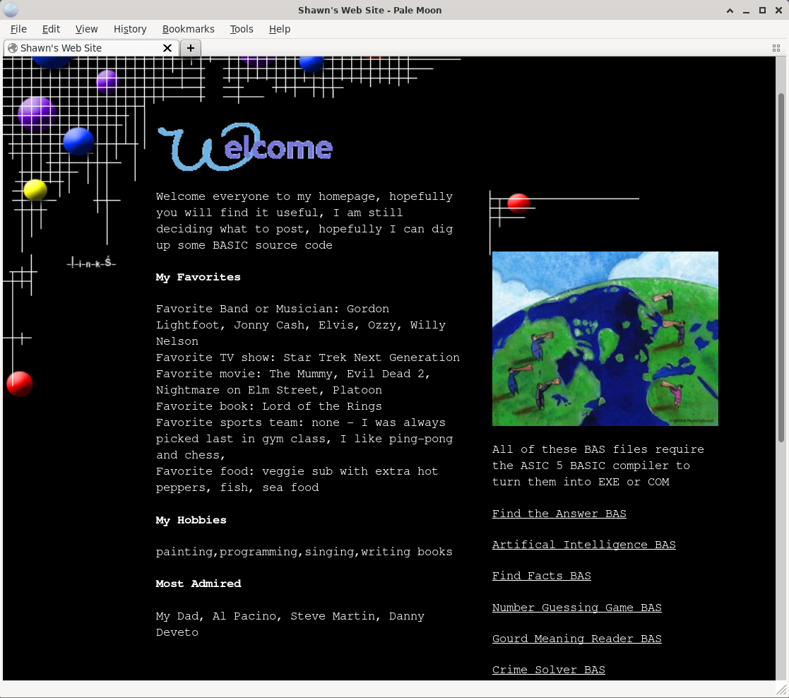 I really like personal homepages and have quite a list of them bookmarked. I'll post one every week unless I fall behind this schedule. ๐ So here's Cool Personal Homepages #CPHP Vol. 53: "Shawn's Web Site" https://atomicbios.tripod.com/