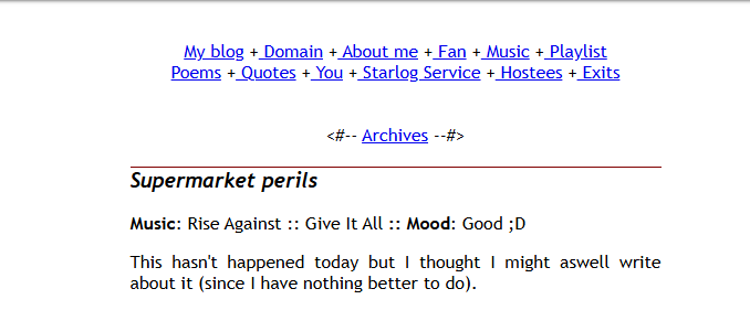 "text": "I'm deep into #IndieWeb dilemma. My mind is still occupied with discovering my old site and there's so many cool things there, that I somehow forgot.\n\nI had a section called \"Domain\", which was a history of the site. Today that would probably be called \"Colophon\"\nI had a section called \"Fan\" which would list image buttons of things I liked, apparently back then 100x31 was the norm, instead of 88x31\nI had a \"Playlist\" page, because back in my day you had to arrange your music manually..\nThere was \"Hostees\", which I had noooo idea what it was till I opened the page.. Apparently I was 'hosting' some of my friend's sites as subdomains on my site.\nAnd there's \"Exits\", which were apparently links to resources, cool websites etc.\n\nThe entire thing was a bunch of <table>'s and inline HTML (+ some CSS), but it worked, and even now in a version where the remote CSS file and images don't work in web.archive.org, it still looks very palatable..\nSo the 'dilemma' is that I changed so many layouts (which was fun), everything was so simple, I barely used paragraphs (apparently) and my content table was 480px and in the middle of the page with a <center>. Now, on gerben.dev, I wouldn't dare to do all that.. everything has to be perfect.. and now I'm thinking whether that is ruining the fun.. I'm trying to rewrite my layout in a different branch, but it's so much work. \ud83e\udee0\n\n#IndieWeb"