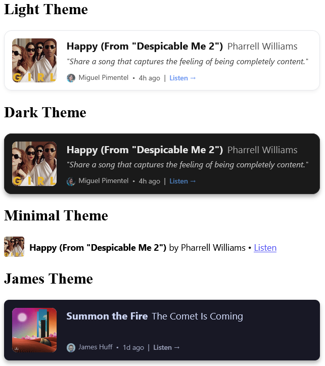 I built a JS widget to inject your latest track post onto any website. It's perfect for @omgdotlol profiles and /now pages. It's simple, themeable, and open-source.