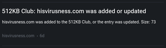 "text": "I really take for granted how small the footprint for the site actually is.\n\n#webdev #512kbclub #indieweb #smallweb"