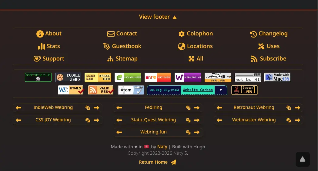 Update on my big Hugo theme redesign! I asked the folks at #Indieweb #HomeBrewWebsiteClub today for some feedback on my new footer and got some really useful advice!