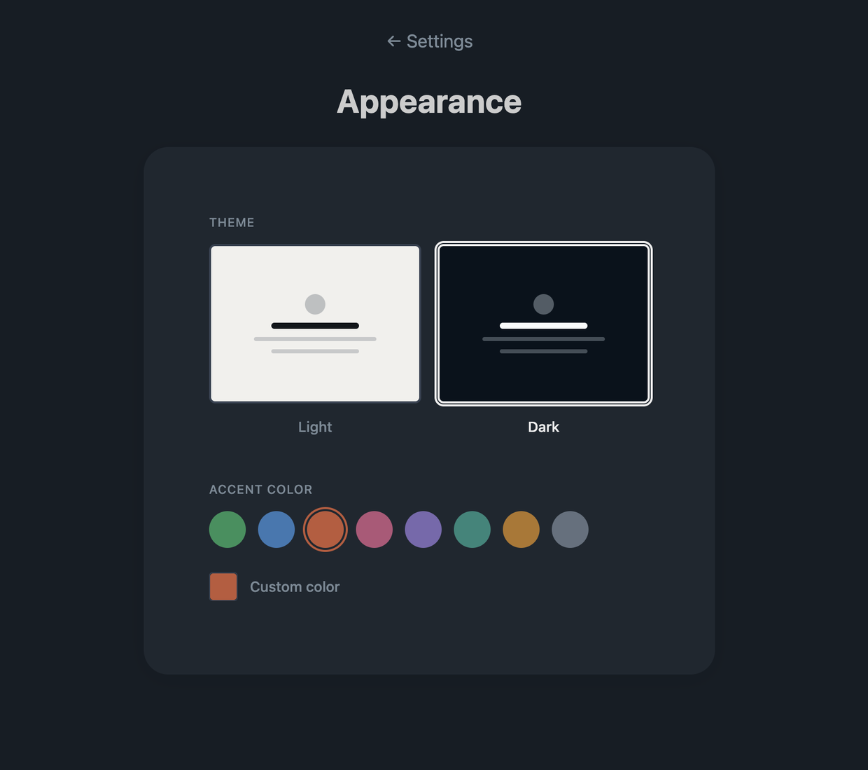 I landed on two settings for Tinypost: light or dark, plus an accent color. The accent runs through your links, your subscribe button, your whole site. Enough to feel like yours. Not enough to turn into a site builder. https://tinypost.blog #tinypost #indieweb #blogging