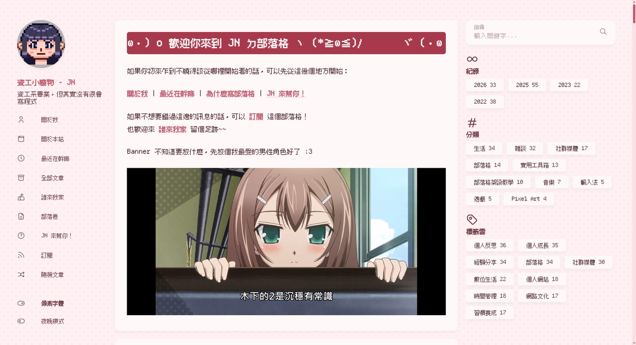 "text": "\u91cd\u65b0\u914d\u4e86\u4e00\u4e0b\u90e8\u843d\u683c\u7684\u914d\u8272\n\u770b\u4e86\u5c31\u958b\u5fc3 <3 <3 <3\n\uff08\u90a3\u500b\u9ede\u9ede\u80cc\u666f\u8d85\u559c\u6b61\uff09\n\n#\u90e8\u843d\u683c #\u500b\u4eba\u7db2\u7ad9 #indieweb #\u7db2\u9801\u8a2d\u8a08"